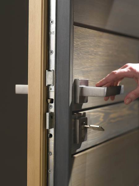 toutes les portes Nativ de Zilten sont livrées avec une fermeture 6 points à crochets, un barillet sécurité + carte de propriété (certification A2P en option).