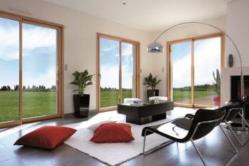 Les baies coulissantes bois / alu MéO peuvent aussi être motorisées (partenariat avec Somfy).
