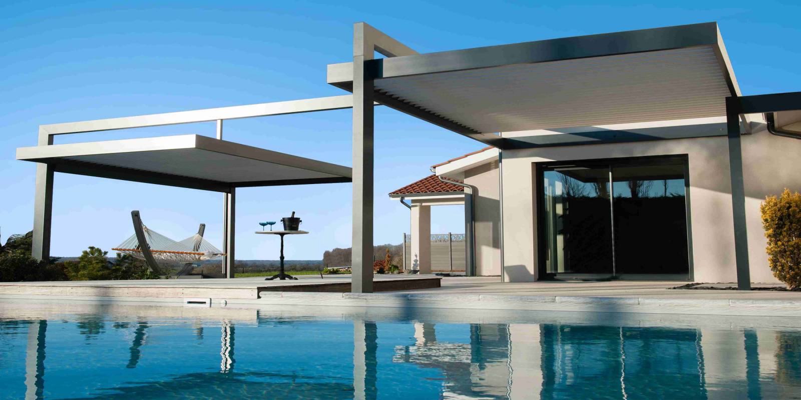 Adossées contre un mur, ou en îlot (indépendantes sur pieds), pour satisfaire toutes les envies, les pergolas se déclinent en différentes versions : bioclimatiques avec lames orientables, à toile enroulable rétractable, toiture pliante et rétractable en accordéon, à toit polycarbonate, toiture solaire, etc...